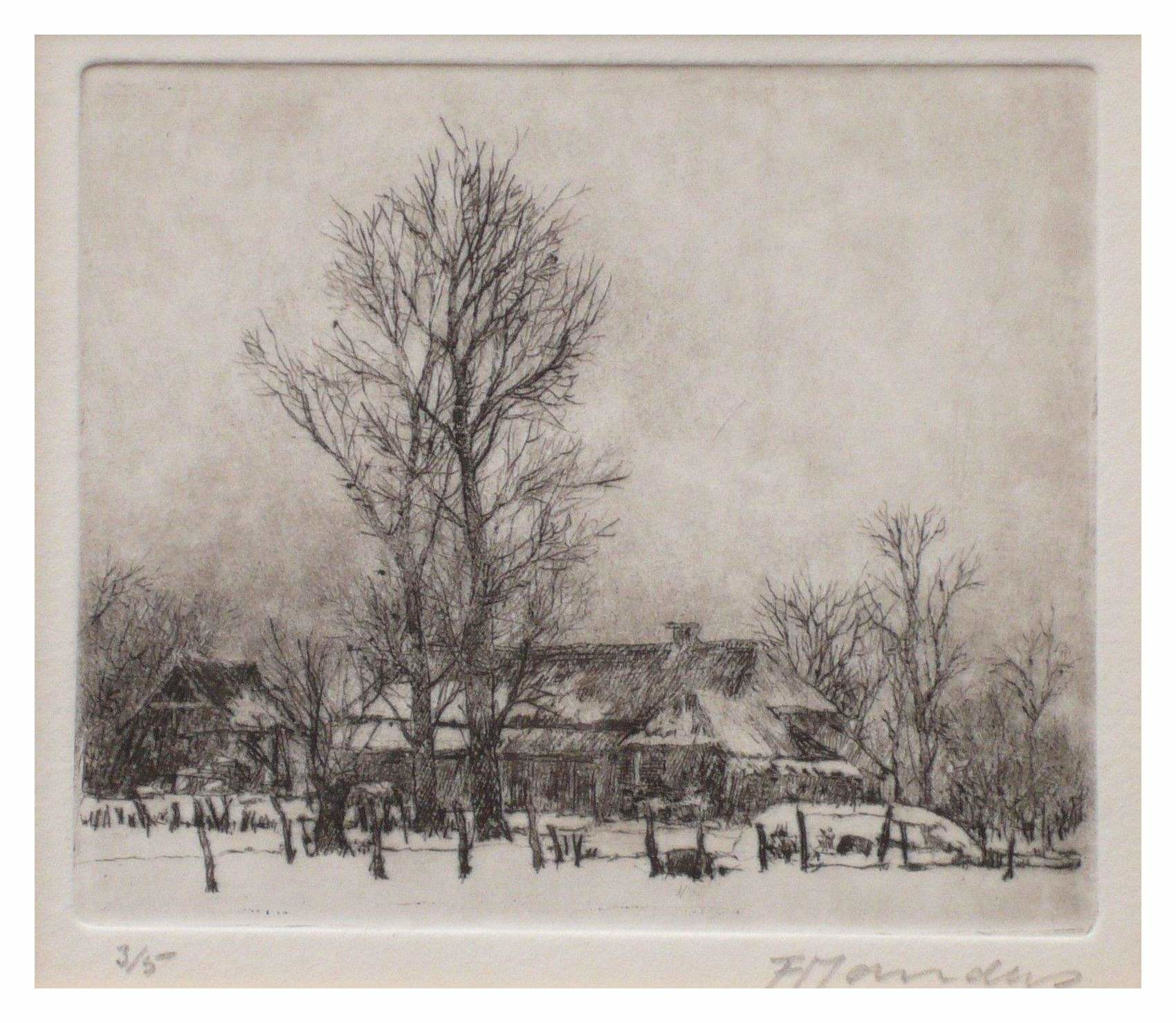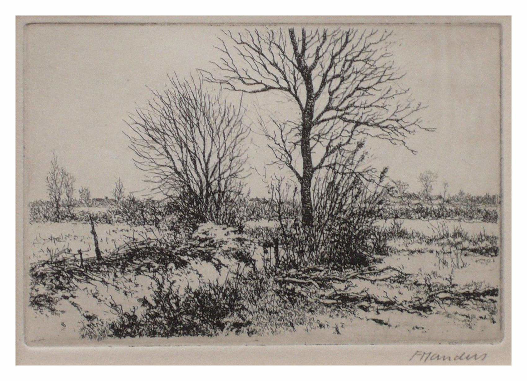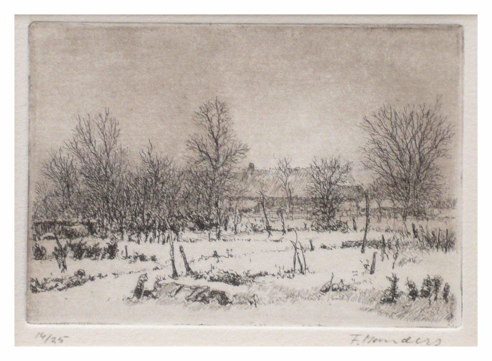 – Winters landschap ets 10 X 12 cm.