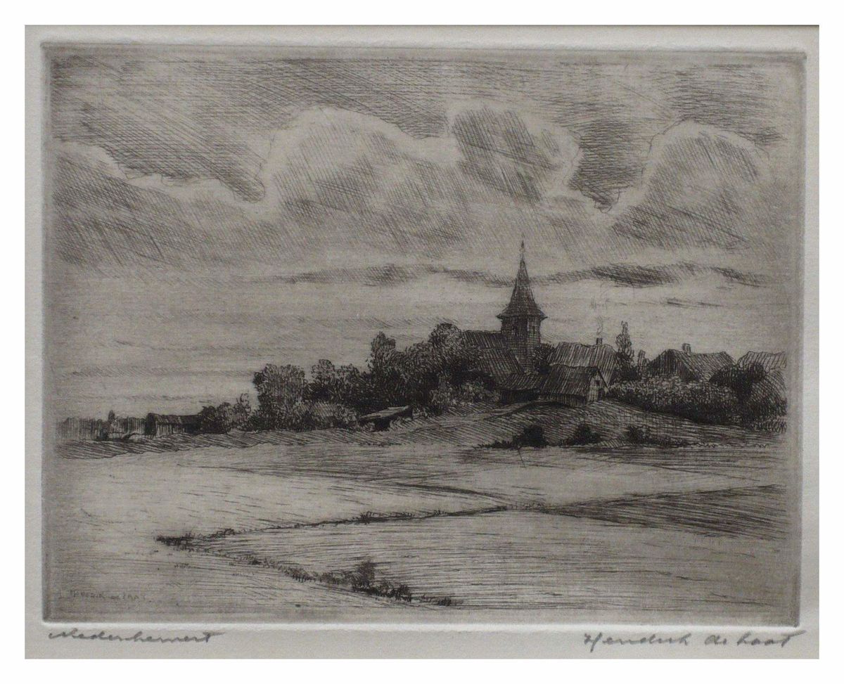 – Gezicht op Nederhemert ets 28 x 38 cm