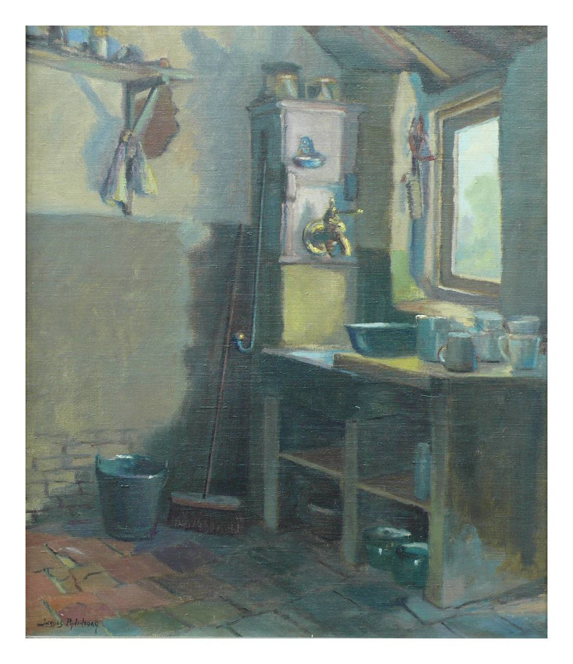 – Jacques Pijnenborg Interieur met waterpomp. doek 60 x 50 cm.