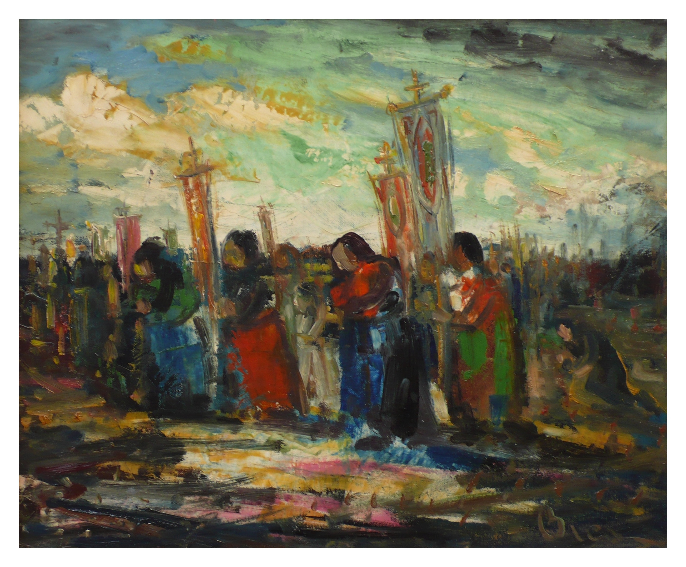 – Marinus Bies Veldprocessie ca. 1960. 50 x 60 cm. – Marinus Bies Veldprocessie ca. 1960. 50 x 60 cm.