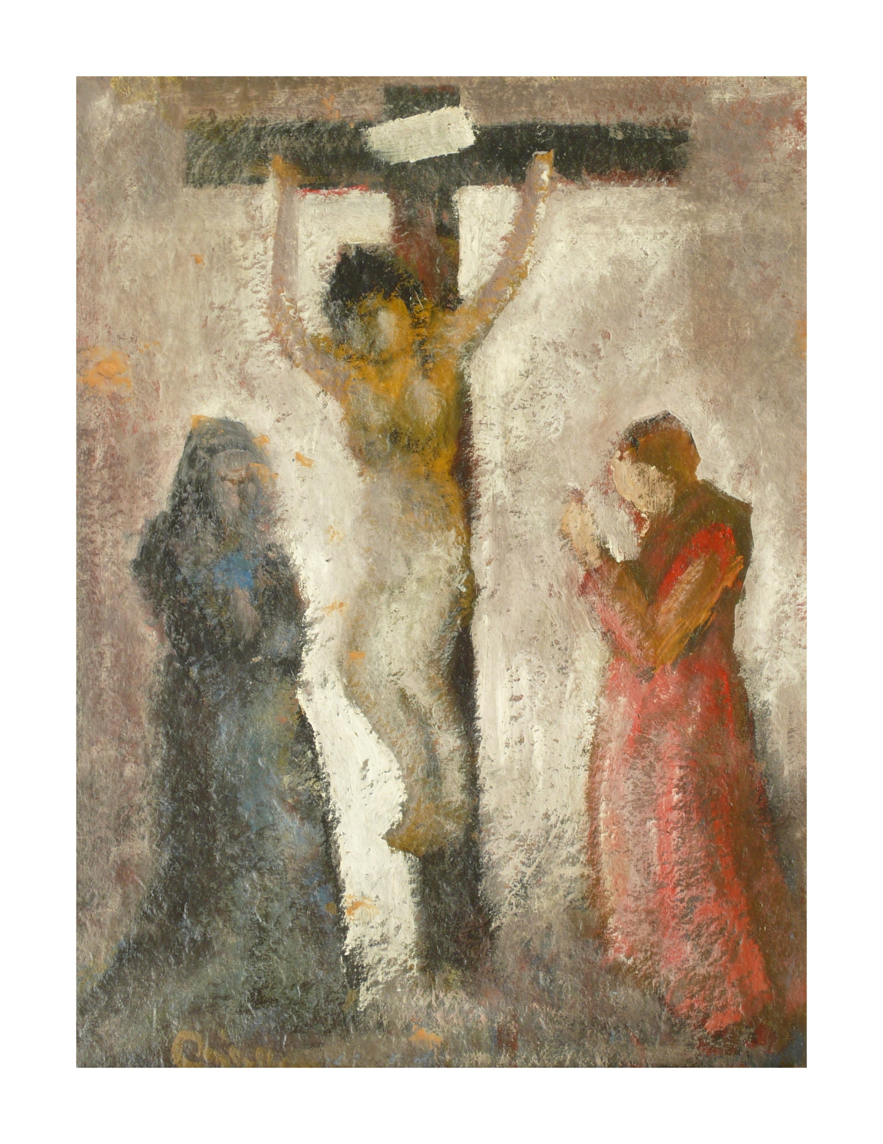 – Marinus Bies ca. 1959 Maria en Johannes de evangelist bij de gekruisigde 61 x 45 cm. – Marinus Bies ca. 1959 Maria en Johannes de evangelist bij de gekruisigde 61 x 45 cm.
