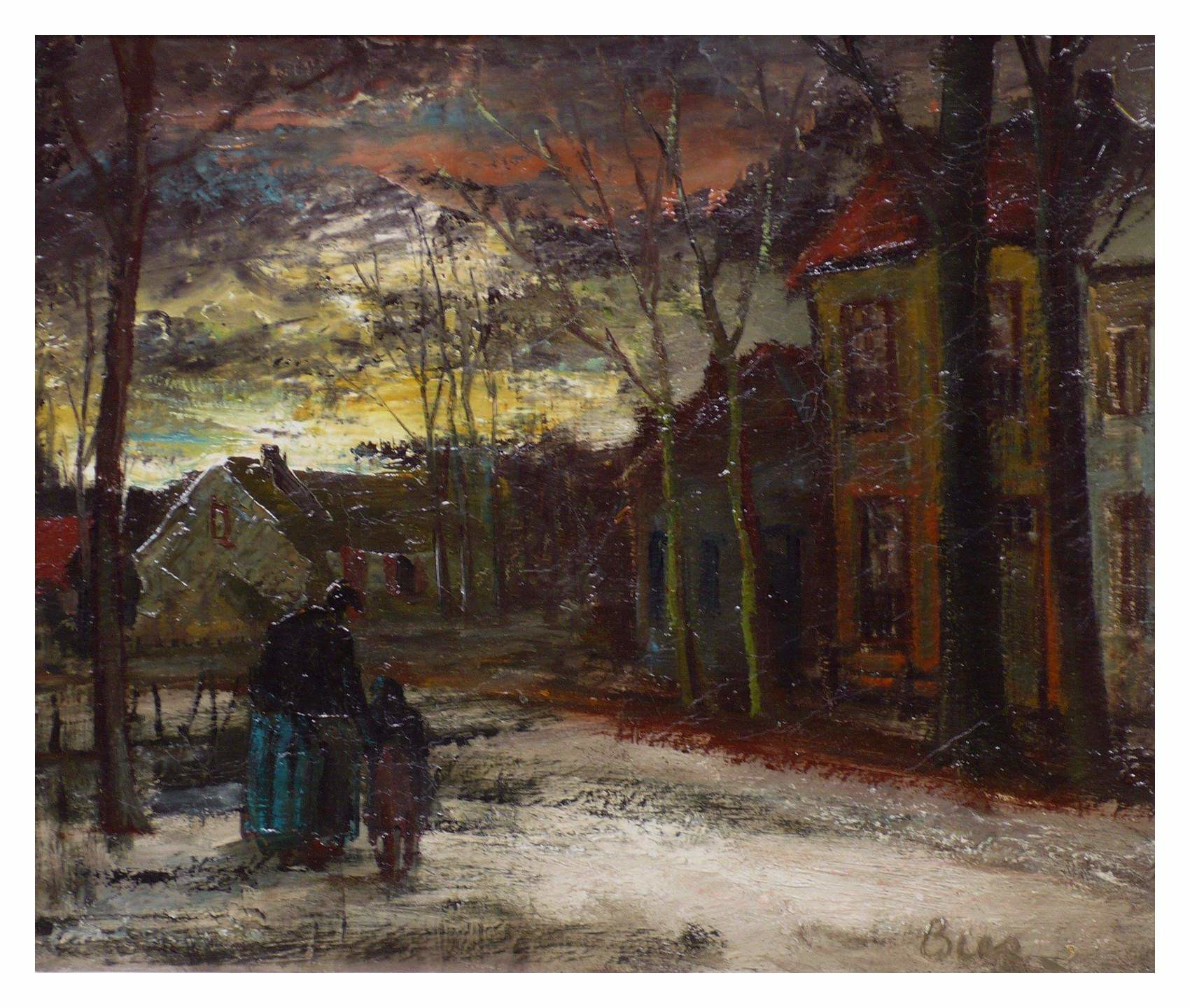 – Marinus Bies ca. 1959 Dorpsgezicht bij winteravond doek 47 X 56 cm. – Marinus Bies ca. 1959 Dorpsgezicht bij winteravond doek 47 X 56 cm. -